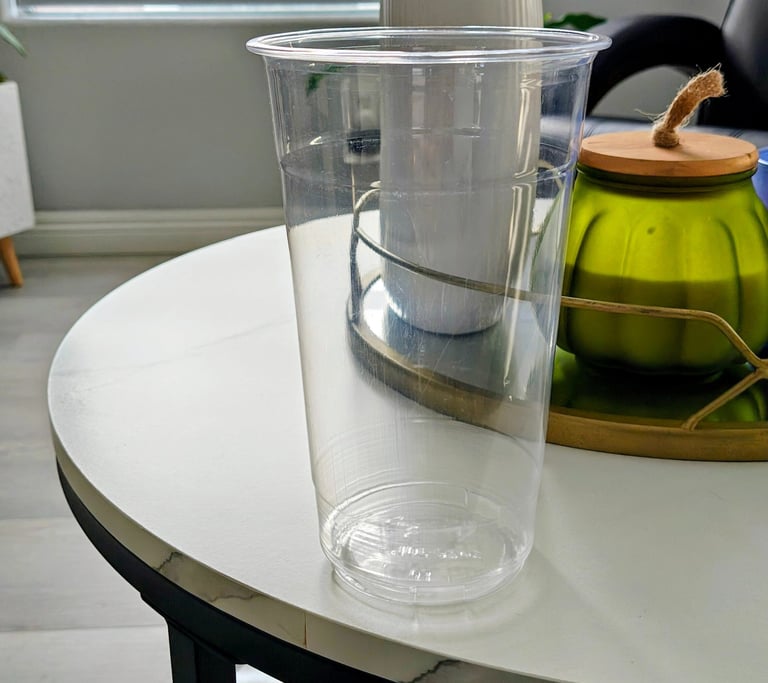 Hemos omitido la tapadera intencionalmente para que sea el vaso, por sí solo, quien demuestre su resistencia y firmeza; una prueba clara de que la calidad que ofrecemos supera a la de muchos vasos comerciales.