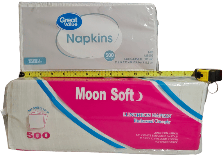 Apart from both packages containing the same number of napkins, Moon Soft is significantly larger due to its thickness and firmness, ensuring that this difference is reflected in its quality.
